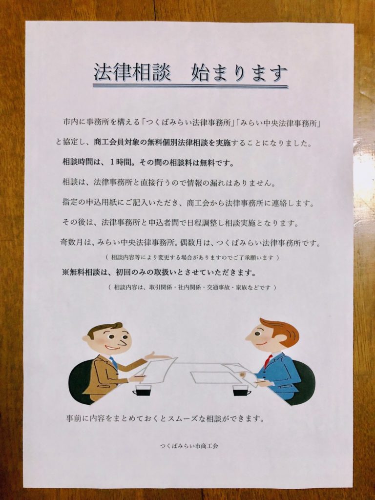 【9月1日~30日まで】つくばみらい市商工会会員様対象 無料法律相談のお知らせ