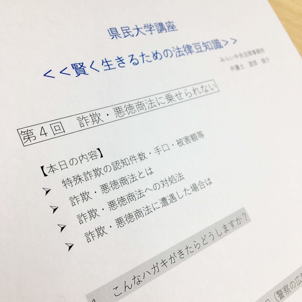 この回のタイトルは、『詐欺・悪徳商法に乗せられない』。